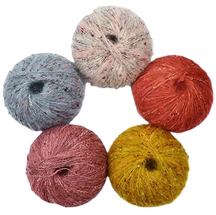 Toptan karışık renkli Fantezi Tiftik yün karışımı Akrilik iplik Tığ işi için el örgü ipliği